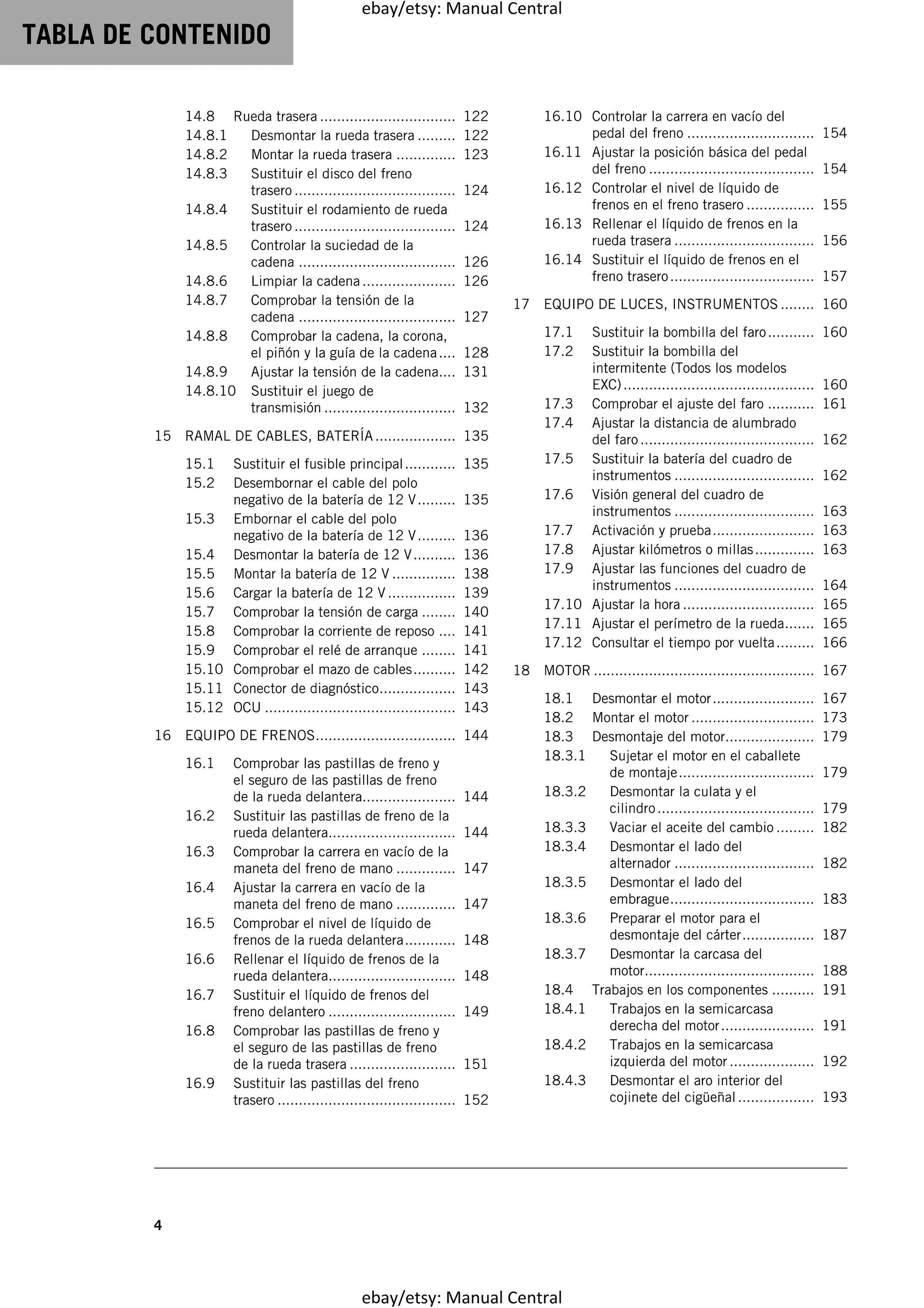 Spanish Language - KTM 2024 - 250 300 Exc Six Days Xc-w Hardenduro - Manual de Reparacion